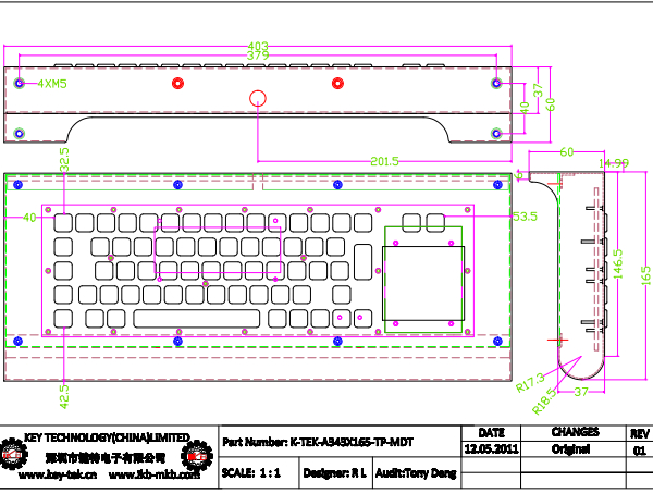 | Key top style | Protuberant rectangular keys, with laser engraved and etched legends and raised braille on keys are available |