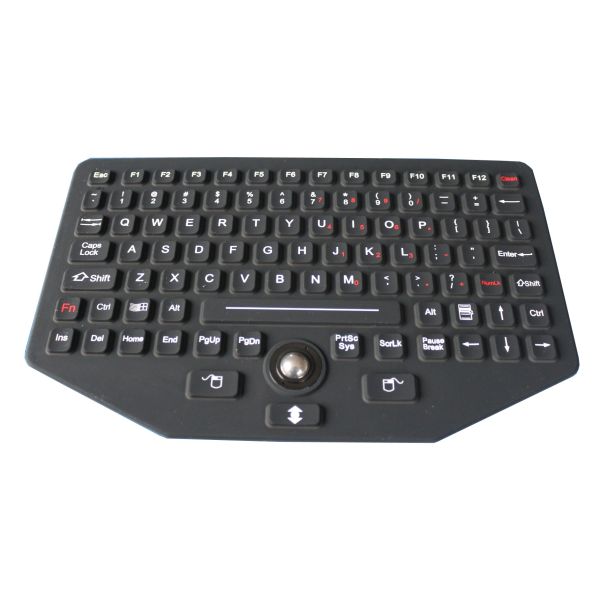92 key IP65 sealed & ruggedized silicone industrial keyboard with trackball