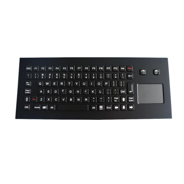 85 keys compact format IP67 dynamic washable vandal proof stainless steel industrial keyboard with IP65 dynamic sealed & ruggedized tough touchpad with scroll function (optional)for fast and accurate cursor position, F1, F2, F3…F10, F11, F12 are on the top line for easy operation, industrial PCB with carbon-on-gold key switch technology with long stroke (2.0mm) with extremely good tactile feeling for fast and accurate data input without any noise. one complete sealing silicone rubber under top stainless steel plate for easy mounting & sealing tightly with cabinet, high quality durable black titanium electroplated on the top stainless steel plate and keys, top stainless steel plate with side threaded bolts for top panel mounting solution. Which is good for outdoor application with direct rain and very harsh environments with humidity, much dynamic water, oil, dirt, salt mist etc.